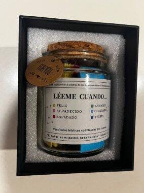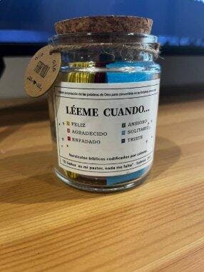 "Estoy pasando una etapa complicada y una amiga me regaló este frasco. Cada mañana abro un versículo según cómo me siento, y es increíble cómo siempre encuentro justo lo que necesitaba leer.